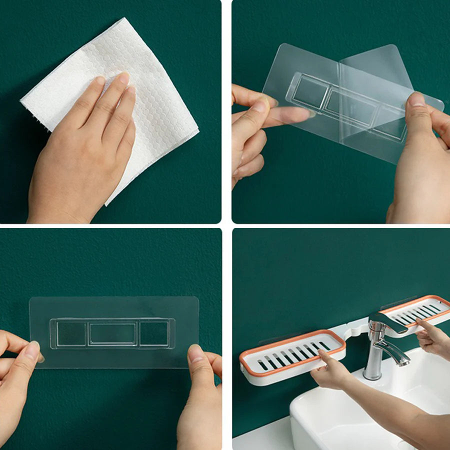 Postavljanje police traje svega nekoliko sekundi, uz pomoć jakih samolepljivih držača.